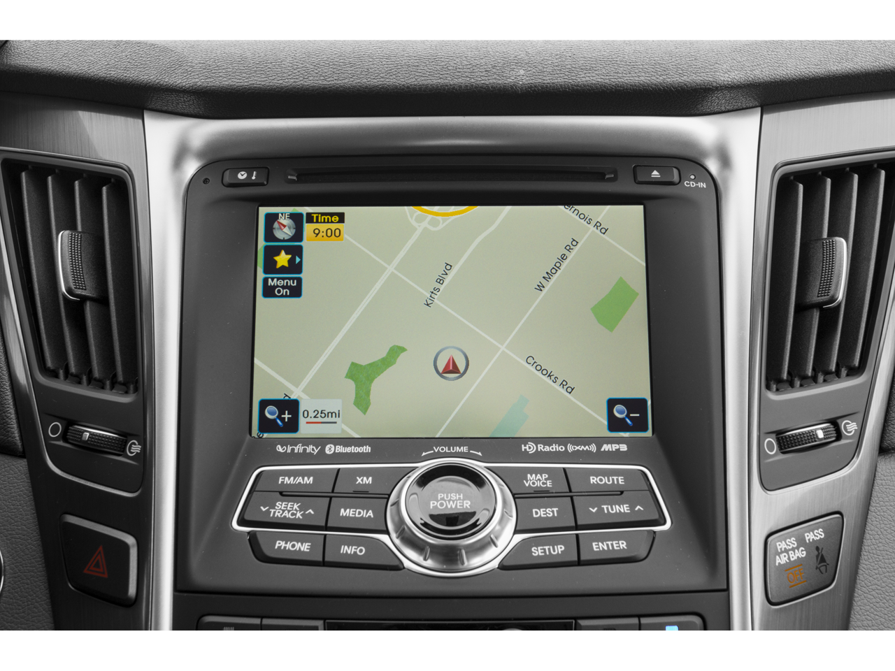 - Radio: AM/FM/SiriusXM/CD/MP3 Audio System -inc: iPod/USB and auxiliary inputs, 6 speakers (2 front-door-mounted, 2 tweeters, and 2 rear - 104 watts), 4.3-inch color touchscreen and HD Radio technology w/multicasting