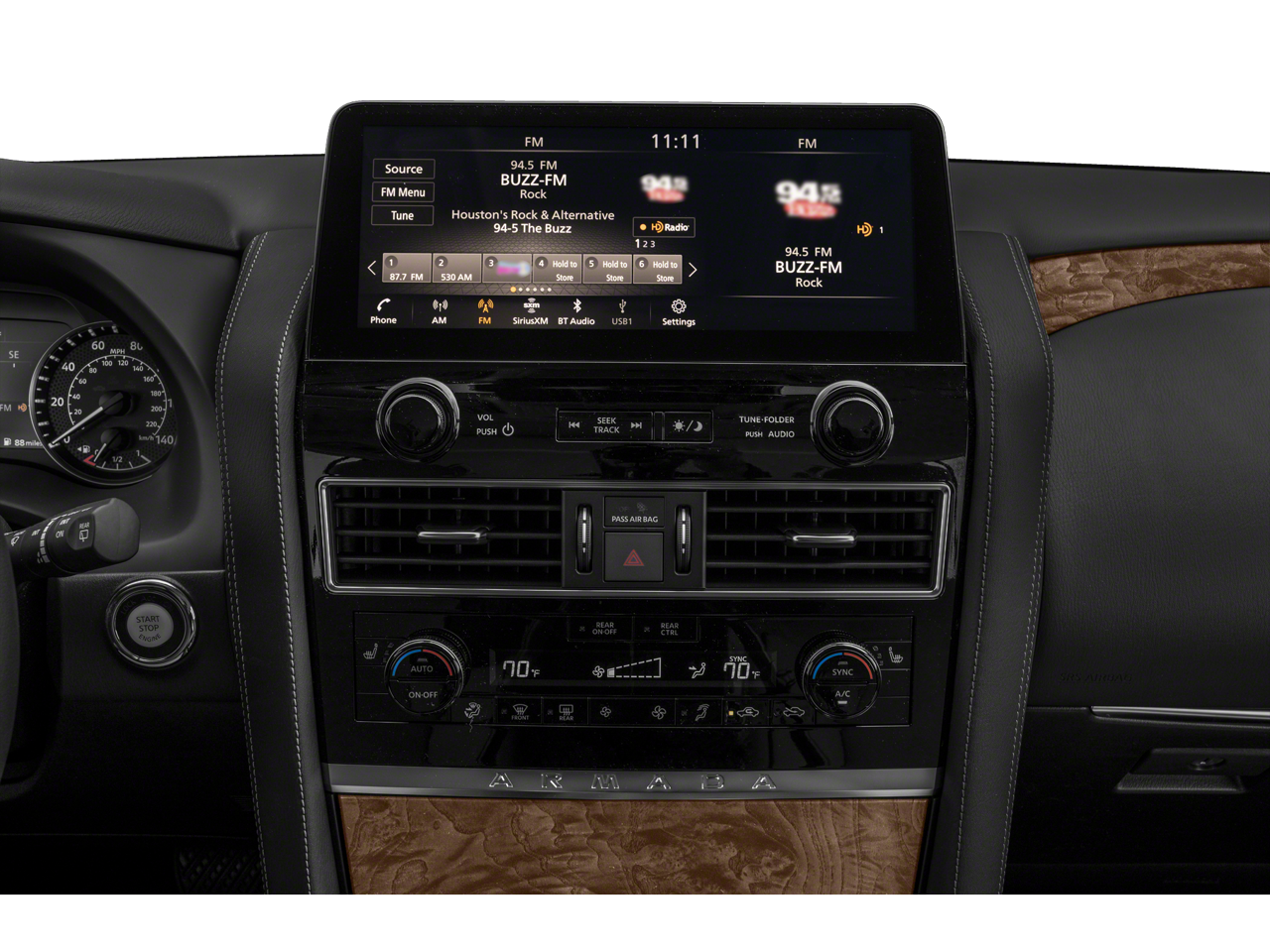 - Radio: NissanConnect w/SiriusXM -inc: 13-speaker Bose audio system, wireless Apple CarPlay, Android Auto, Nissan door to door navigation, 12.3" color display w/multi-touch control, SiriusXM Traffic and Travel Link w/three month complimentary trial access, NissanConnect Services powered by SiriusXM, Bluetooth® hands-free phone system, hands-free text messaging assistant and Wi-Fi hotspot